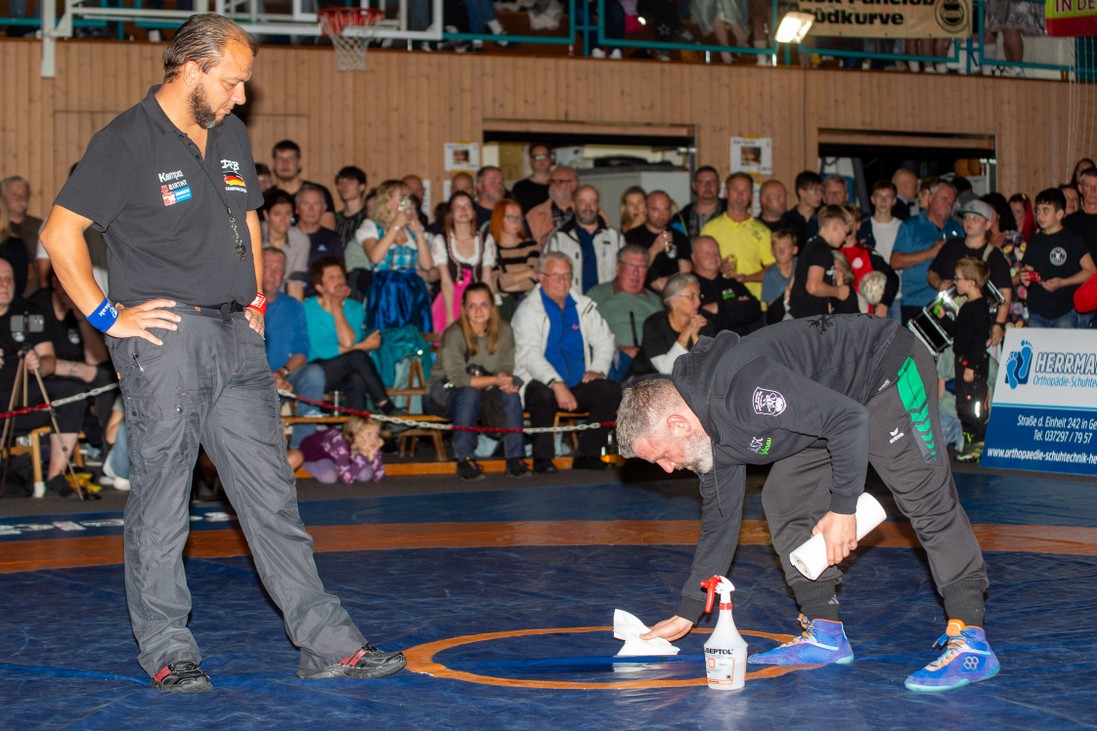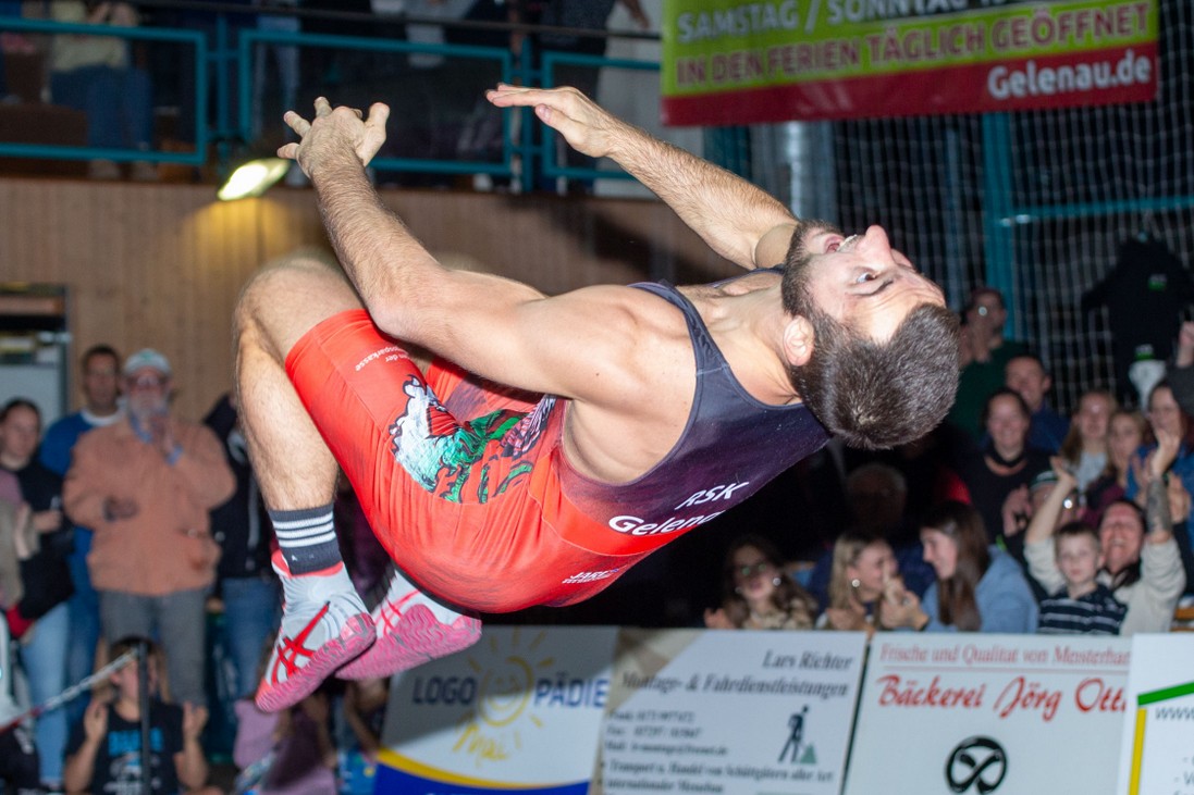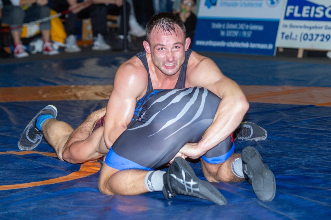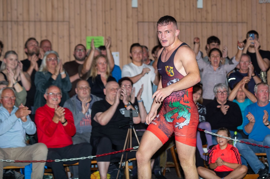 Kurz vor der Pause brachte Gerard Kurniczak (98 kg GR) die Halle erneut zum Jubeln. Mit kraftvollen Angriffen zwang er seinen Gegner David Adler früh auf die Schultern – 8:0 und ein klarer Schultersieg. Der Halbzeitstand: 10:4 für die Gastgeber.