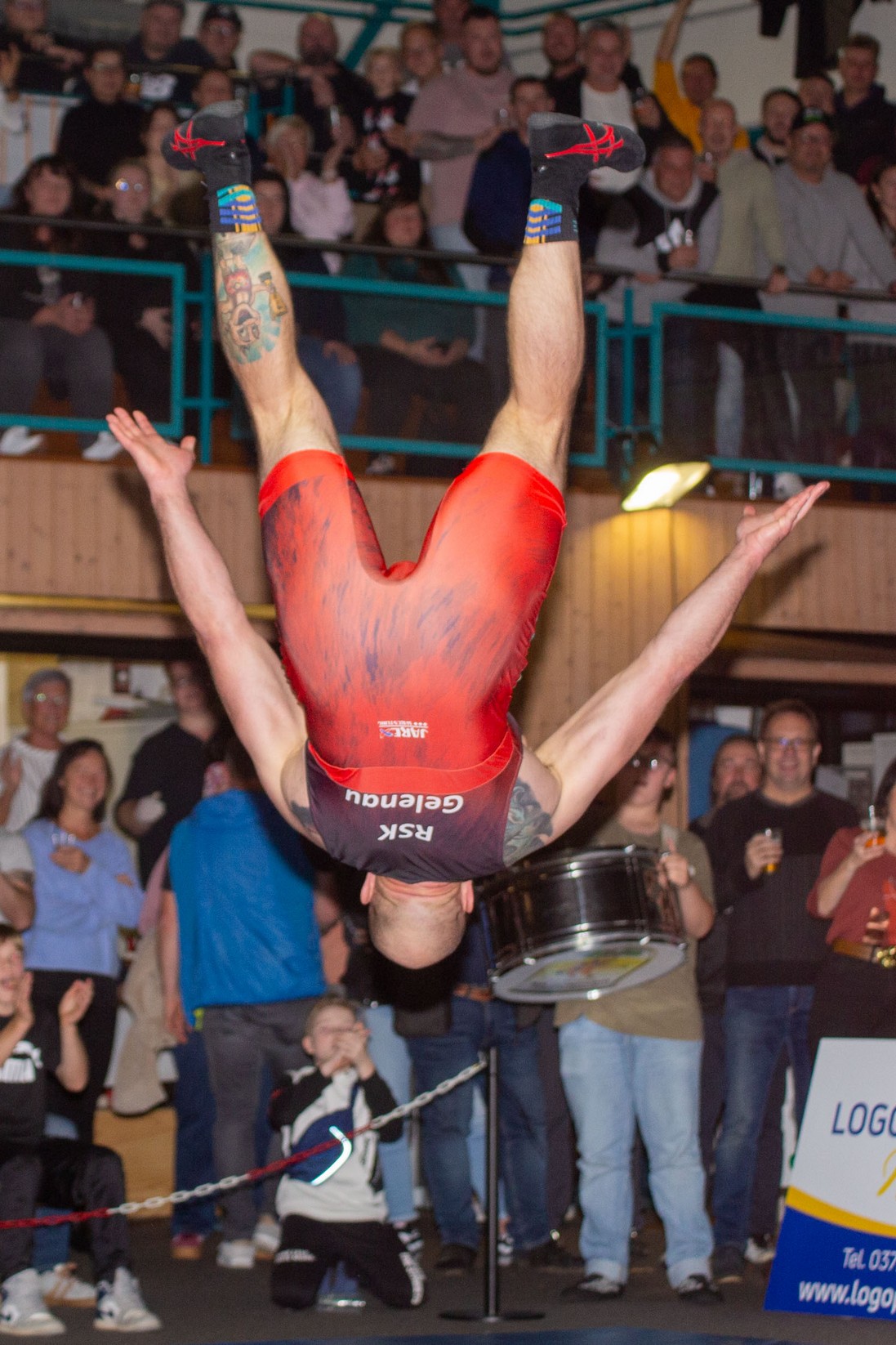 Trotz anderer Veranstaltungen an diesem Abend fanden über 300 Zuschauer den Weg in die "Erzgebirgsblick" Halle – und sie bekamen einiges geboten: Gleich mehrere Schultersiege sorgten für Jubelstürme, und 2 spektakuläre Saltos von "Gerhard" Gerard Kurniczak und Kamil Czarnecki ließen die Fans begeistert aufstehen.